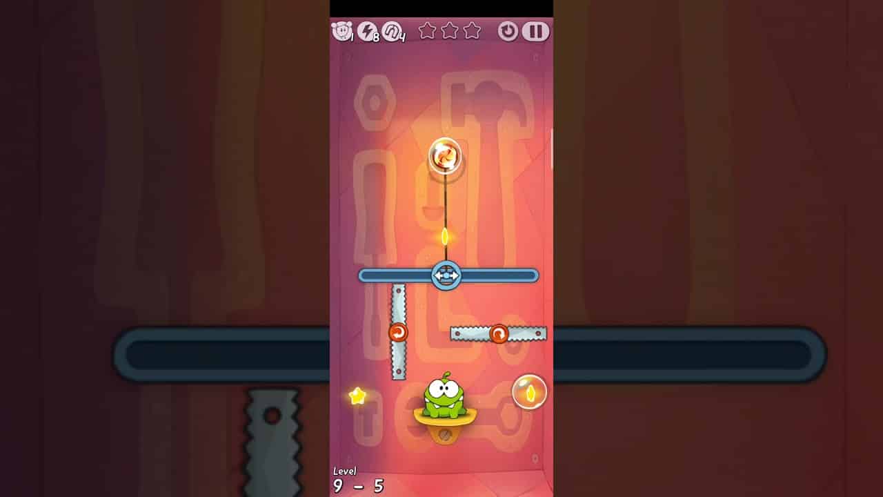 How do you beat Cut the Rope level 9-5 in Toolbox? This page contains the solution of level 9-5 in episode 9 (Toolbox) from the popular iOS and Android game Cut the Rope. This step-by-step walkthrough will guide you through each and every part of this game and assist you with the solution to complete this level with 3 stars.